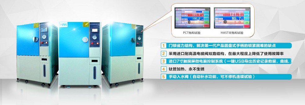 高壓加速老化試驗箱適用于國防、航天、汽車部件、電子零配件、塑膠、磁鐵行業、制藥線路板,多層線路板、IC、LCD、磁鐵、燈飾、照明制品等產品之密封性能的檢測。